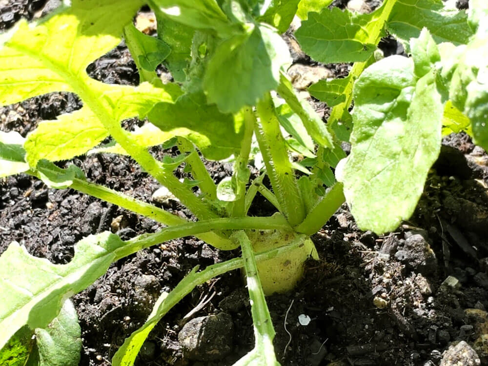 強風で根だけになった所から復活したツインテールの大根もだいぶ大きくなりました🎉