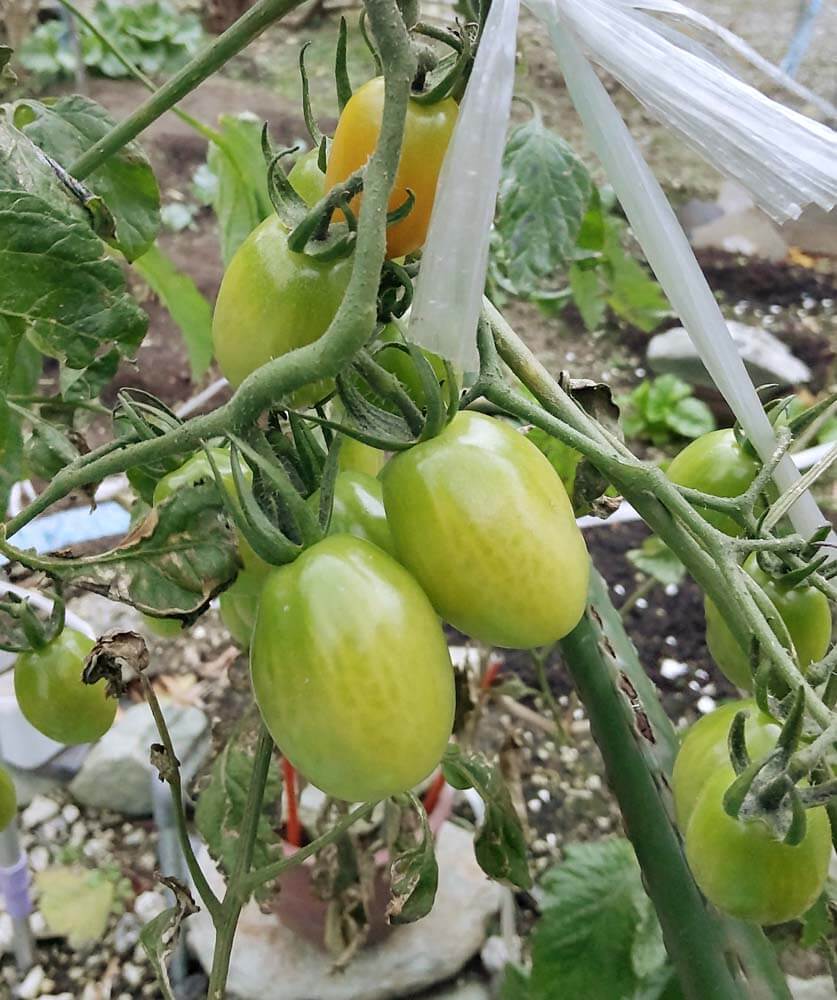 ミニトマトのアイコちゃんは、家の影になって朝と夕方合わせて1時間から2時間くらいしか日が当たってませんが、10℃前後だというのにまだ何とか成長しています。