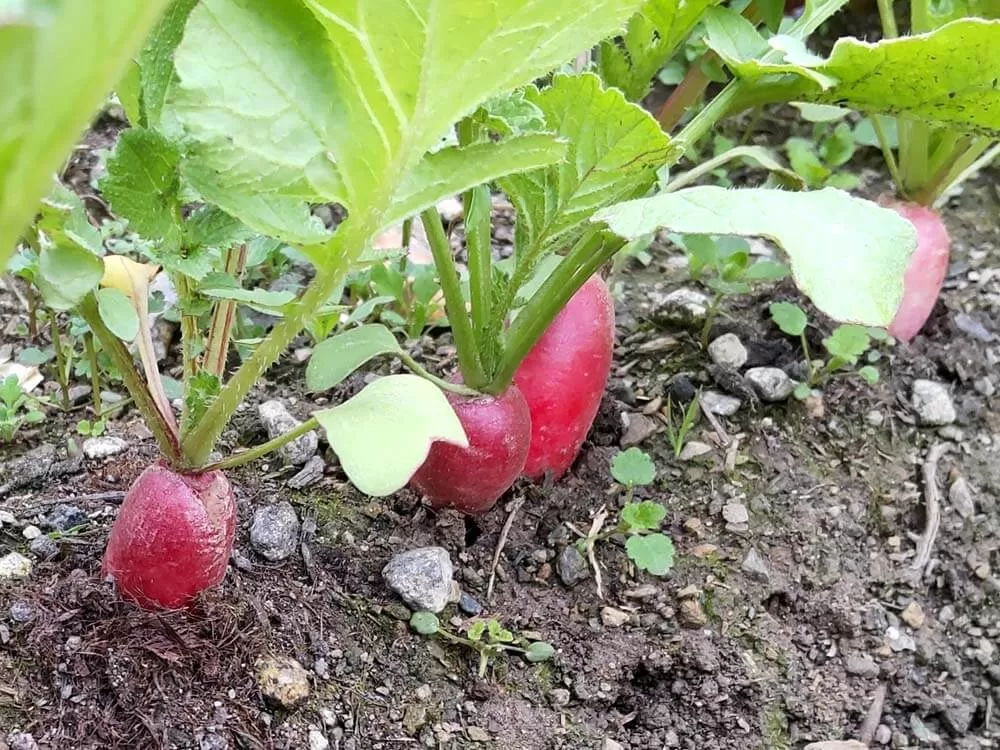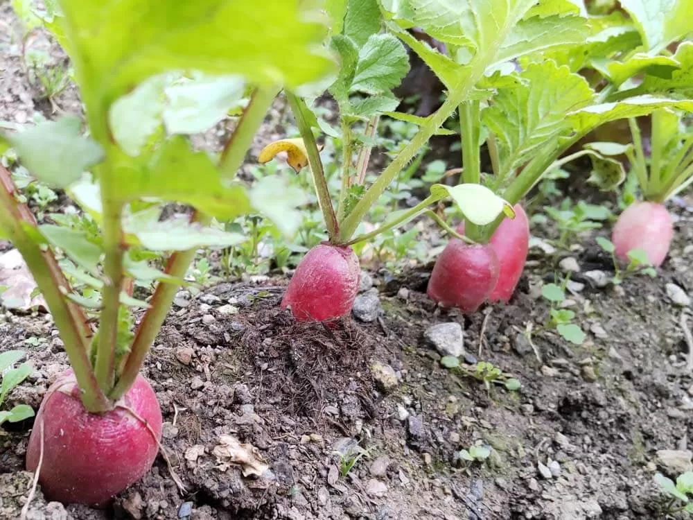 暑さのせいか、二十日だいこんが早く大きく育ちました😊
