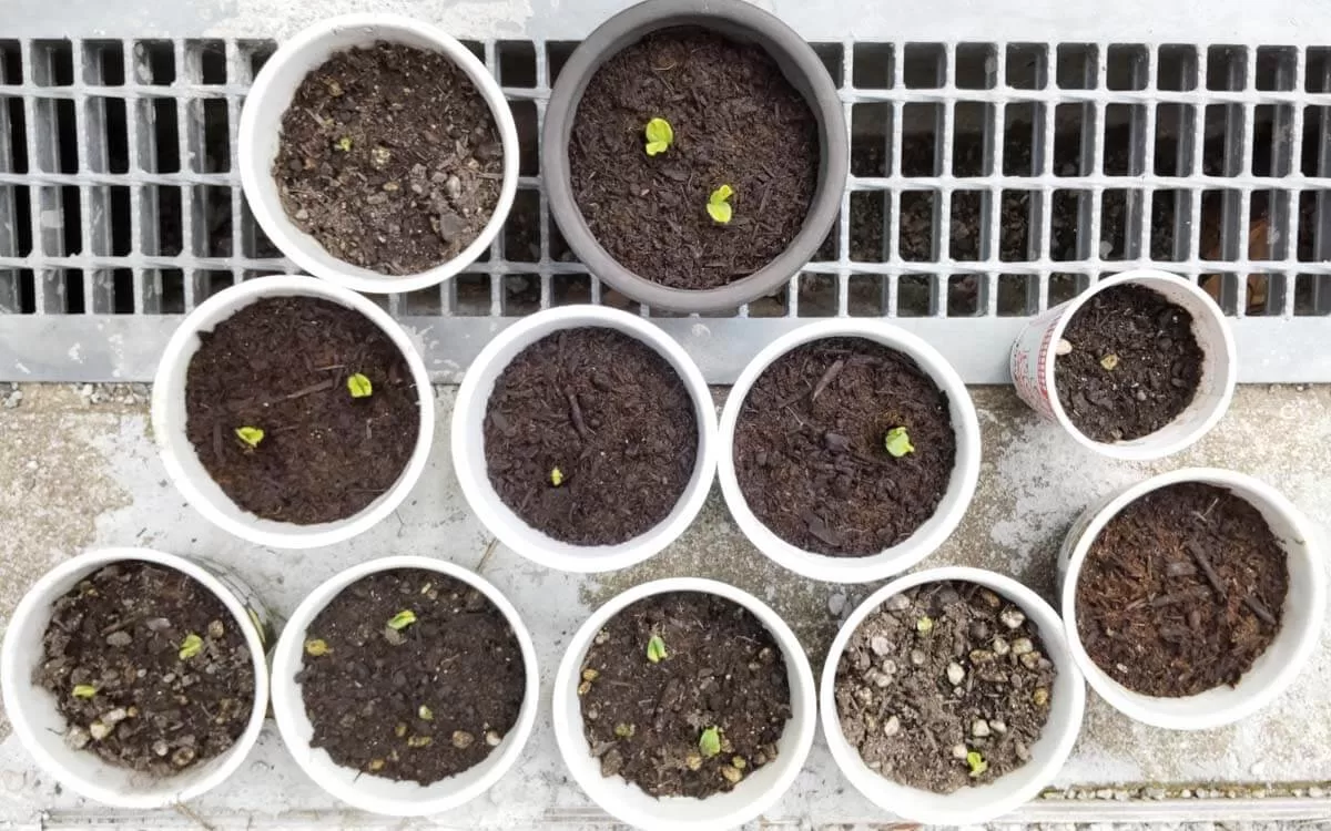 オクラの早蒔き分は、半分以上枯れそうなんで、予備の第二陣の準備中分の芽が一斉に出てきました😎