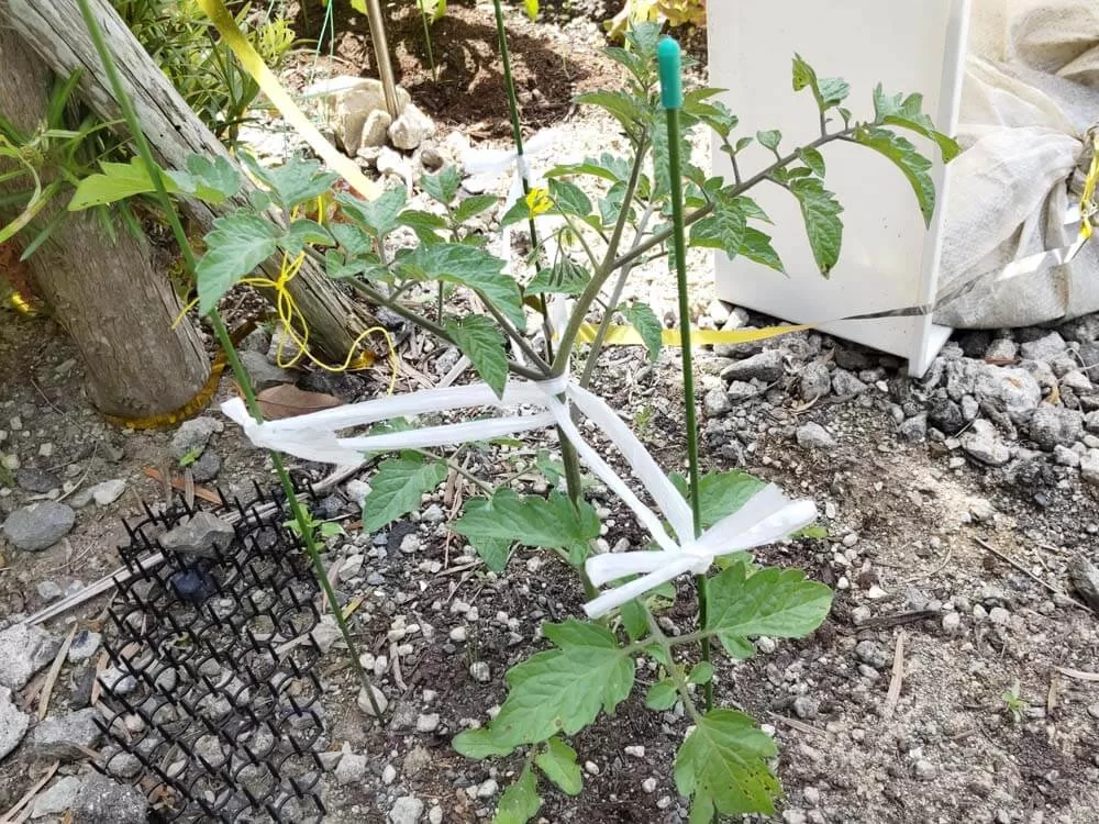 写真は、左から順にアイコ三世、普通のミニトマト、下のが手間いらずのあまり背が高くならないミニトマトです。