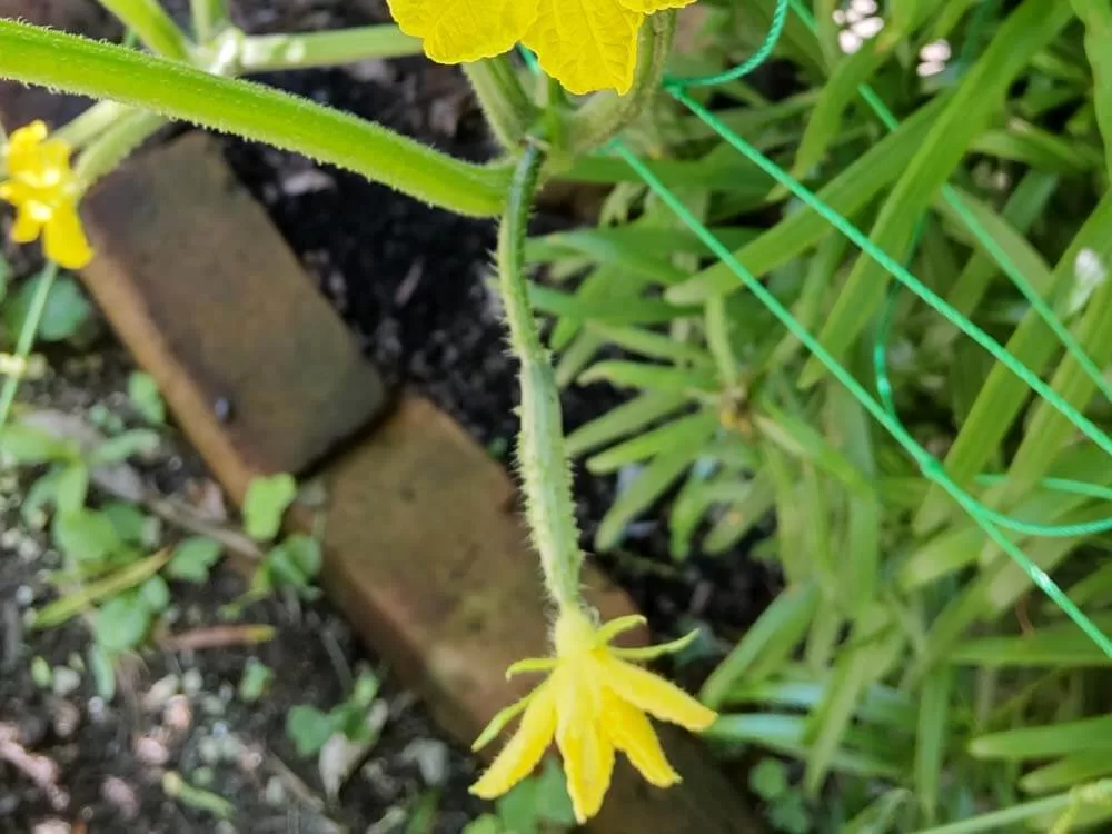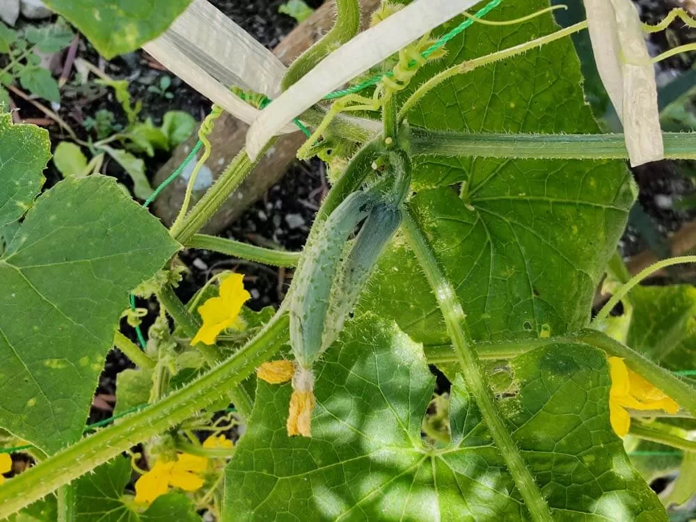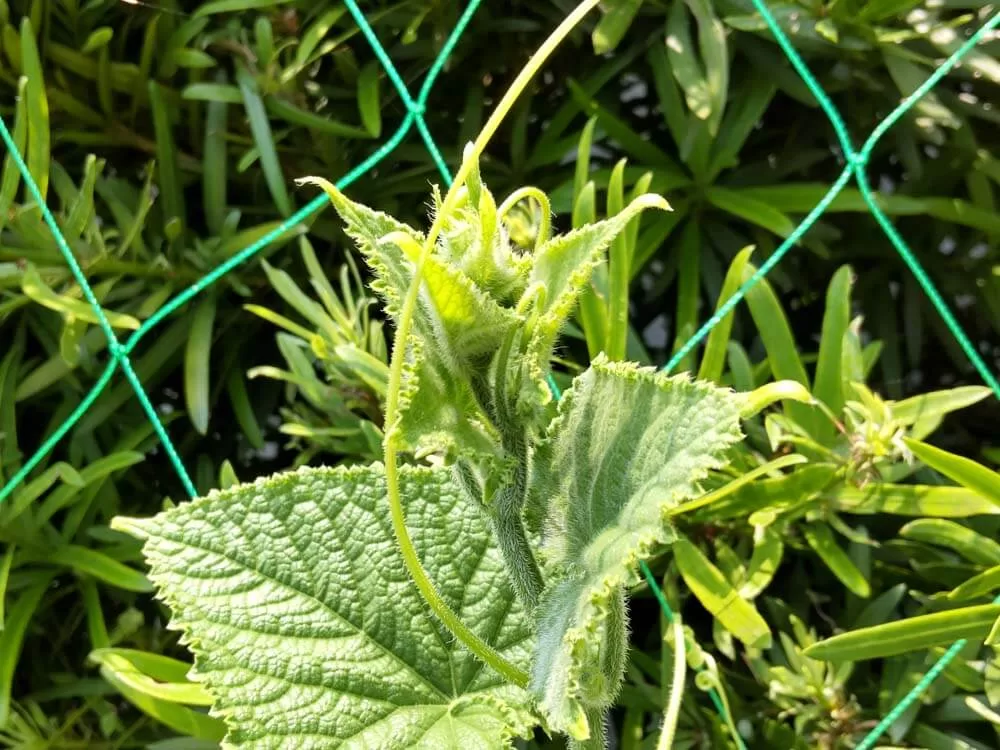 この品種は今回初めてで、背が高くなるのと子づるが出るのは早いけど、なかなか実がつかず、ついたと思ったら、やけに実までの距離が長いし、なかなか大きくならない😂