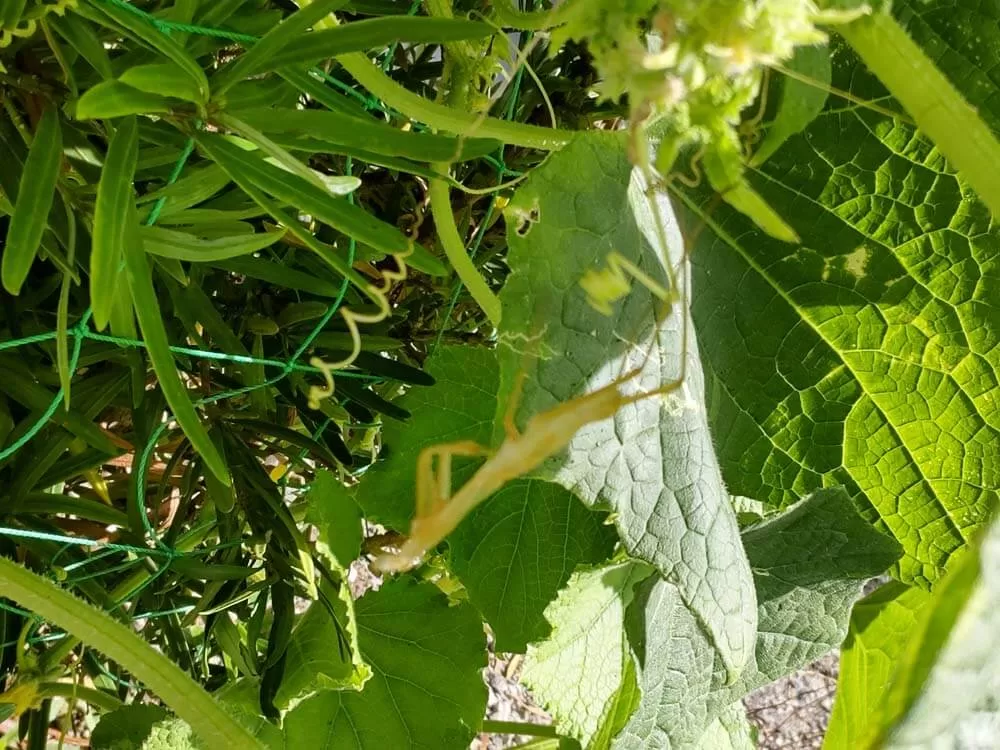 そうそう、今朝カマキリのきれいに脱皮したのが風に揺られてました。