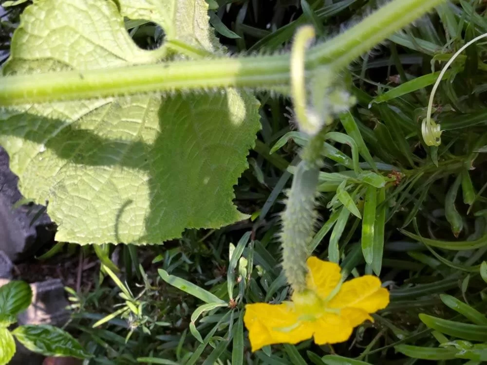 暑さのせいか、キュウリの花も変な風に咲いてきた😎