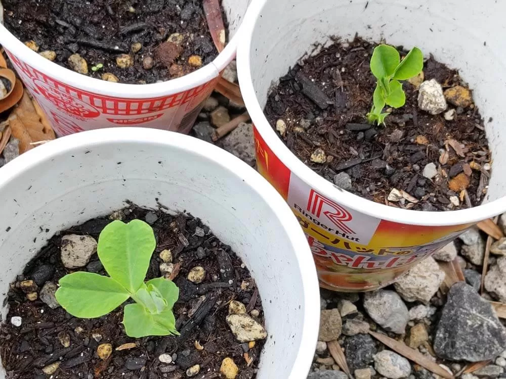 タマネギは、なかなか発芽しませんが、スナップエンドウは順調です。