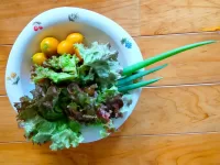 今日のお裾分けは、金柑・サニーレタス・ネギです。