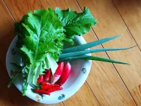 今日のお裾分けは、紅白はつか大根・ベビーリーフ・ネギ・唐辛子です。